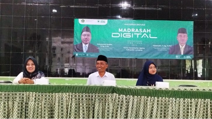 Kepala madrasah, operator dan bendahara MA. Miftahul Ulum Banyuputih Kidul mengikuti pelatihan teknis Anugerah Inovasi Madrasah Digital Jawa Timur Tahun 2022 di Aula MAN Lumajang, Senin (22/08/22). Kegiatan ditempatkan di aula lantai 2 tersebut merupakan tindak lanjut Program Anugerah Inovasi Madrasah Digital Jawa Timur tahun 2022 yang telah dimulai dengan Webinar Madrasah Digital Kabupaten Lumajang pada tanggal 9 Agustus.